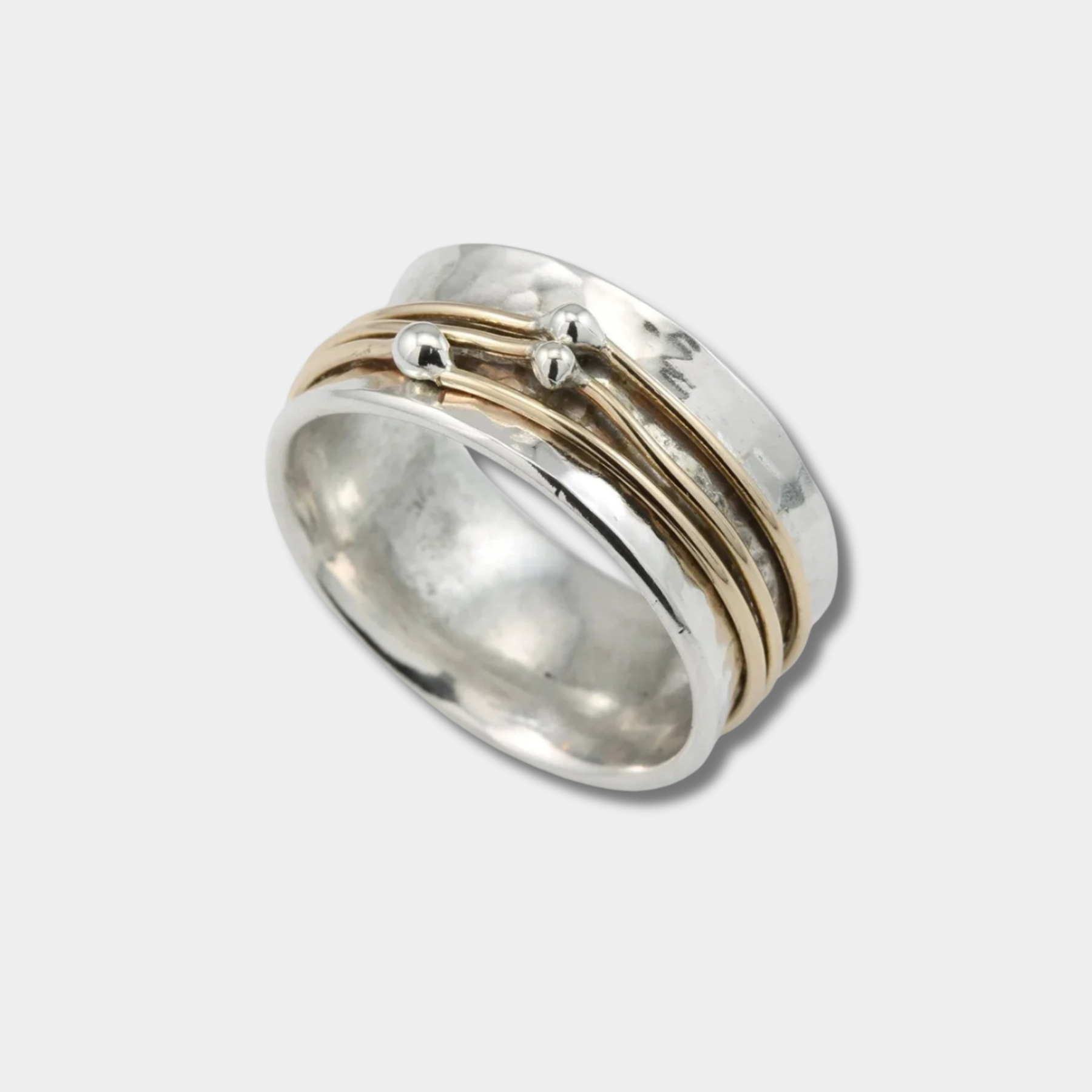Marlene – Široký prsteň s jemne kladeným povrchom a zlatými akcentmi