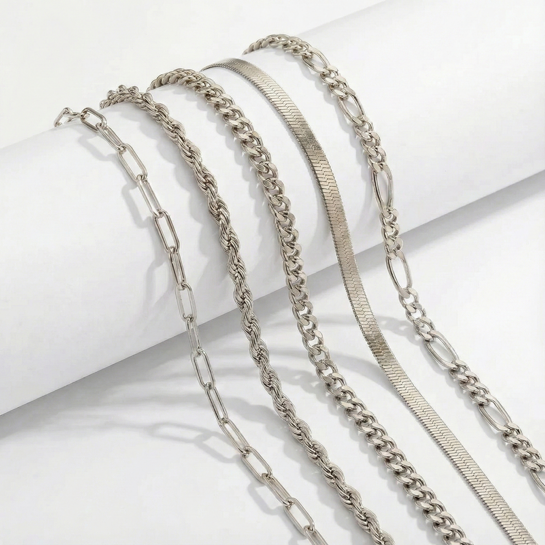 Design: Mix jemných reťazí: Paperclip, Rope, Snake a Figaro
